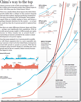 Projecções de quando o PNB da China ultrapassar o PNB dos EUA, baseadas em diferentes taxas de crescimento. Versão pdf aqui. Versão interactiva, do Washington Post, aqui.