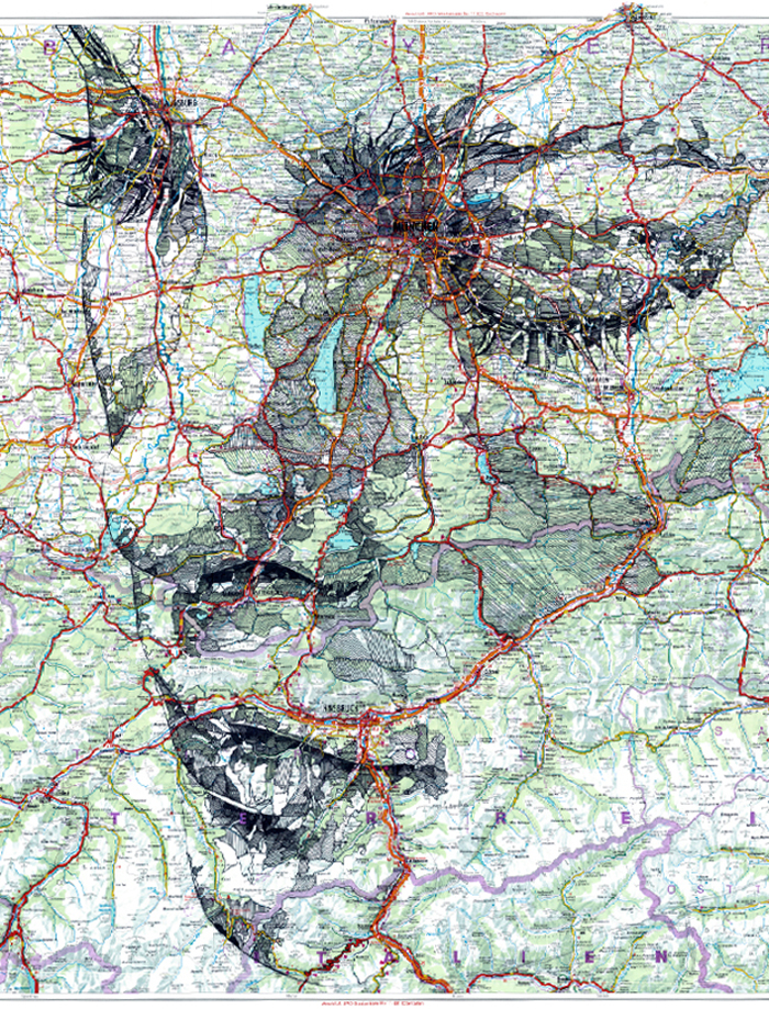 Retratos impressionantes de tinta e lápis sobre Mapas