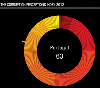 Portugal ocupa o 33º lugar no Índice de Percepção da Corrupção 2012.