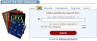 O Geo Data Portal é uma fonte credenciada de conjuntos de dados usada pela UNEP e pelos seus parceiros no Global Environment Outlook (Geo). A sua base de dados estatísticos online possui mais de 500 variáveis diferentes, nas escalas de análise nacional, sub-regional, regional e global, abrangendo temas tão diversos como a água potável, população, florestas, emissões, clima, desastres, saúde e PNB . Podemos visualizar estes dados sob a forma de tabelas de dados, gráficos ou mapas ou simplesmente transferi-los para o nosso computador em vários formatos possíveis.