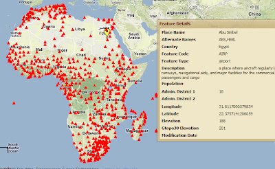 Há também um separador "Places", que permite assinalar as localizações geográficas das cidades, lagos, canais, pântanos, montanhas, planaltos, e muitos mais. Aqui está a localização dos aeroportos africanos: