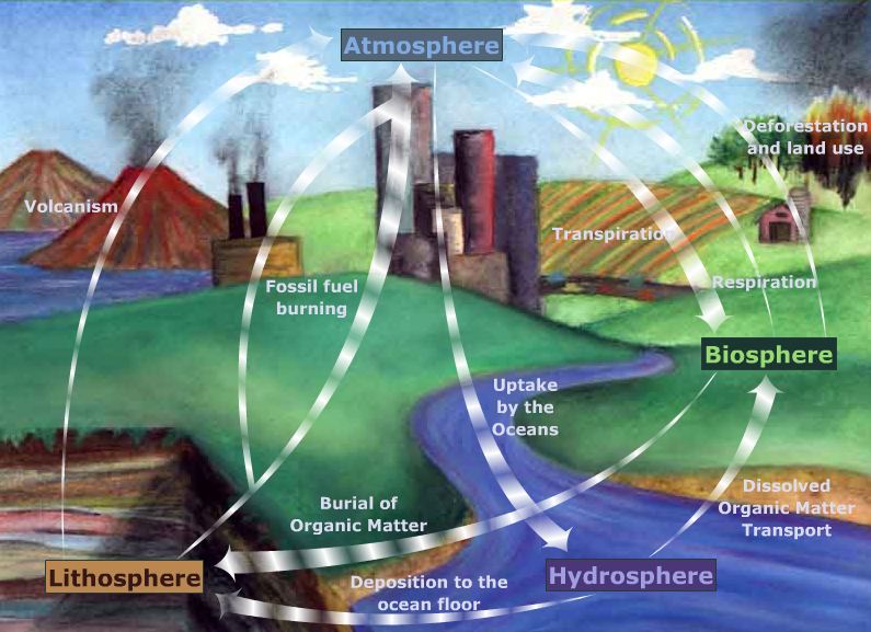 Este Atlas of Biosphere do Center of Sustainability and the Global Environment da University of Wisconsin - Madison, tem duas secções muito interessantes: os mapas, divididos em 4 categorias (Human Impacts, Land Use, Ecosystems, and Water Resources) e os esquemas (Carbon cycle, IBIS, Nitogen cycle...). Possibilidade de transferência para o nosso computador dos mapas em diferentes formatos (imagem, ESRI shapefile...). Na secção esquemas tem uma breve descrição do ciclo e uma animação em flash (como aquela que ilustra este post e que representa o ciclo do carbono - versão estática).