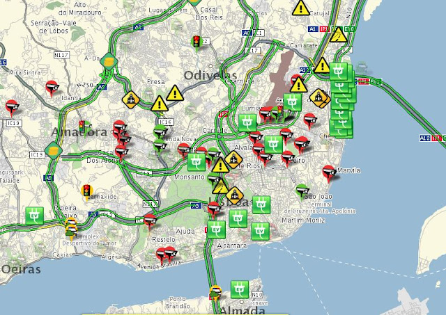 Num mapa detalhado, os vários radares de trânsito, assim como outra informação útil, desde os locais onde se podem recarregar veículos eléctricos a pontos de risco onde a nossa atenção deve ser redobrada. Aqui.