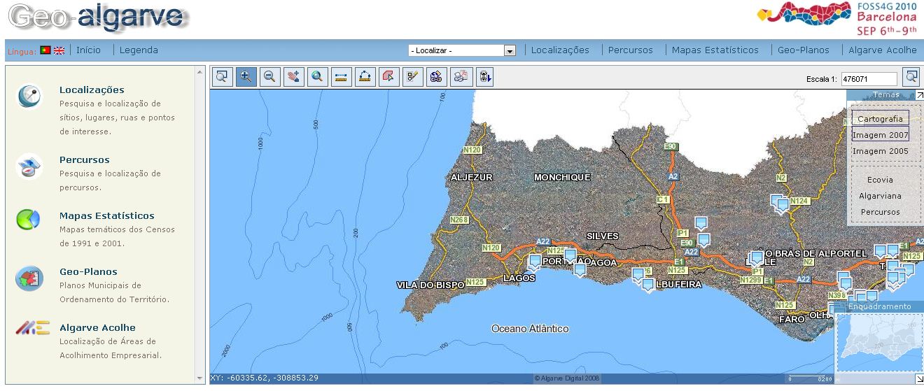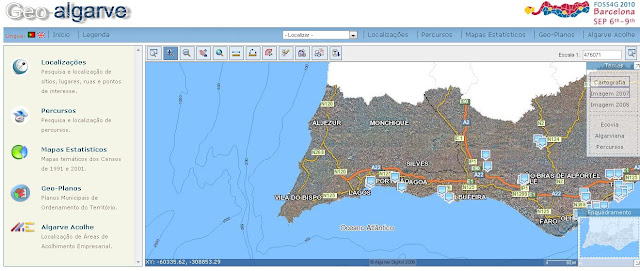 O site do projecto Algarve Digital dispõe de uma plataforma WebSIG regional. Para além da consulta do mapa do Algarve, em forma de ortofotomapa e/ou cartografia vectorial, apresenta as seguintes funcionalidades: