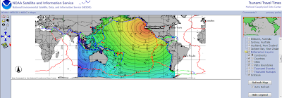 Websig da NOAA aqui para a construção de mapas do tempo de deslocação de um tsunami a partir de um ponto pré-definido na bacia do Pacífico. Podemos adicionar várias layers como por exemplo os limites das placas tectónicas.