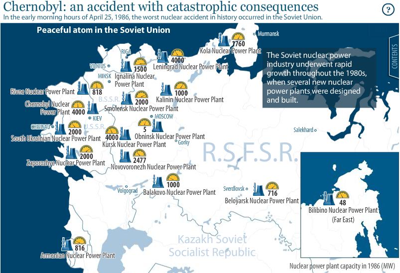 Às primeiras horas do dia 25 de Abril de 1986, o pior acidente nuclear da história ocorria na União Soviética. Animação flash muito completa aqui (fonte) ou aqui.