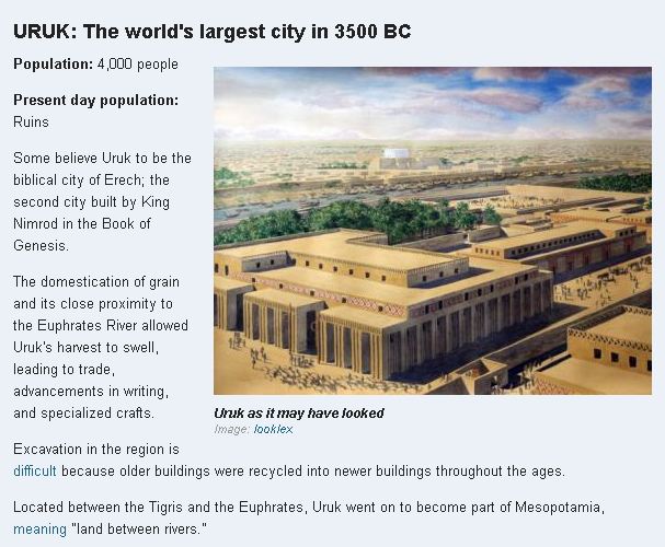 - URUK: The world's largest city in 3500 BC