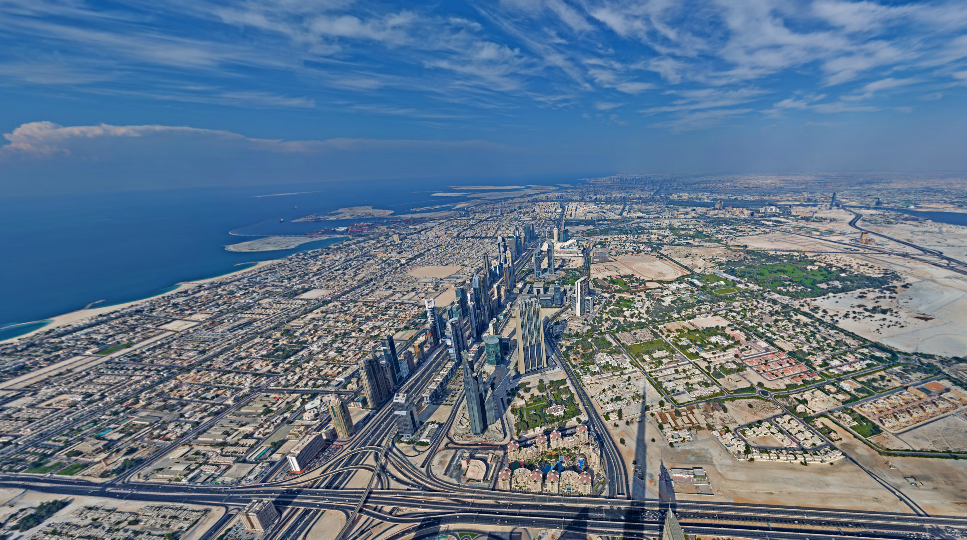 Imagem interactiva de 2,5 GigaPixels, panorama de 360º, vista do pináculo do edifício mais alto do mundo, o Burj Khalifa, no Dubai. A imagem criada pelo fotógrafo Gerald Donovan é composta por 70 imagens individuais, 48 das quais foram capturadas por um tripé panorâmico mecanizado e as restantes foram tiradas pelo Gerald Donovan manualmente. O panorama é uma promo para o Mohammed bin Hamdan bin Rashid Al Maktoum International Photography Award (Hipa), um concurso de fotografia anual.